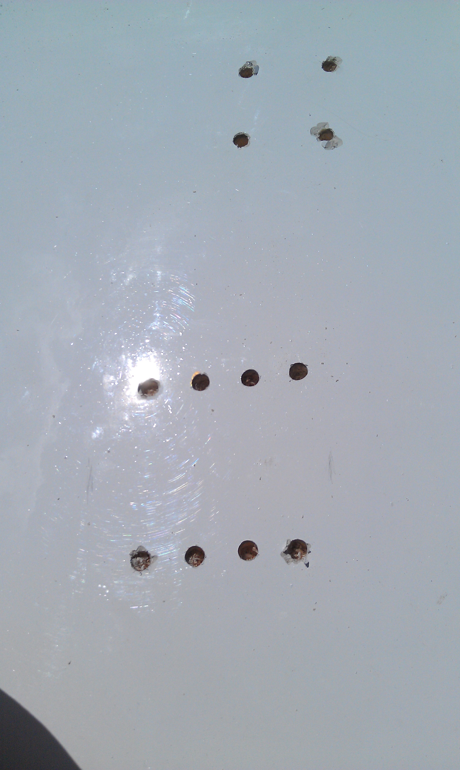 An einigen Stellen ließen sich leichte Schäden beim Bohren nicht vermeiden. Diese sind aber unkritisch, da mit Dichtmasse abgedeckt.
