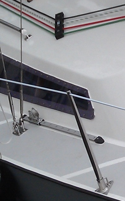 Ich habe mich für Pfeiffer Travellerschienen und -blöcke, Fallenumlenker entschieden, bei den Blöcken fiel die Wahl auf Holt Allen. Die Blöcke sind wirklich super, extrem leicht und mit den kugelgelagerten Großschotblöcken segelt sich die Banner jetzt leicht wie eine Jolle. Als Fallenstopper kommen zwei vierfache Spinlock Mini's zum Einsatz.