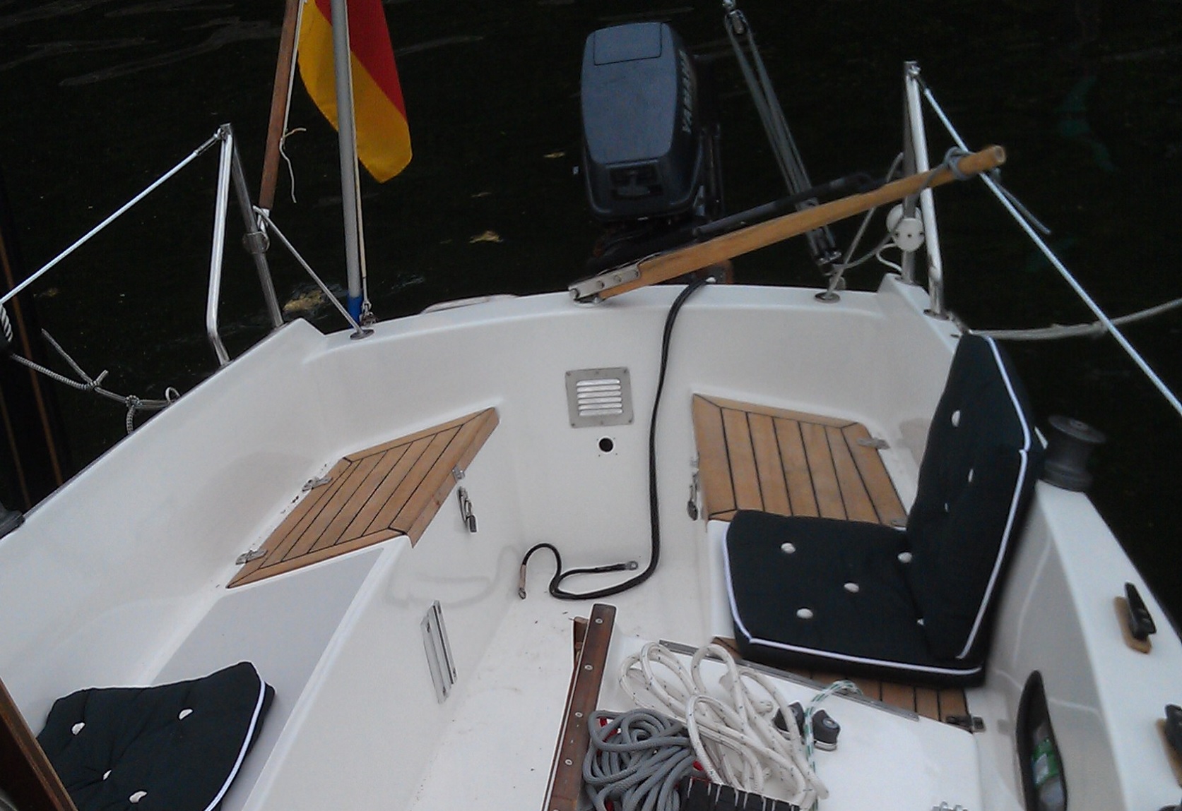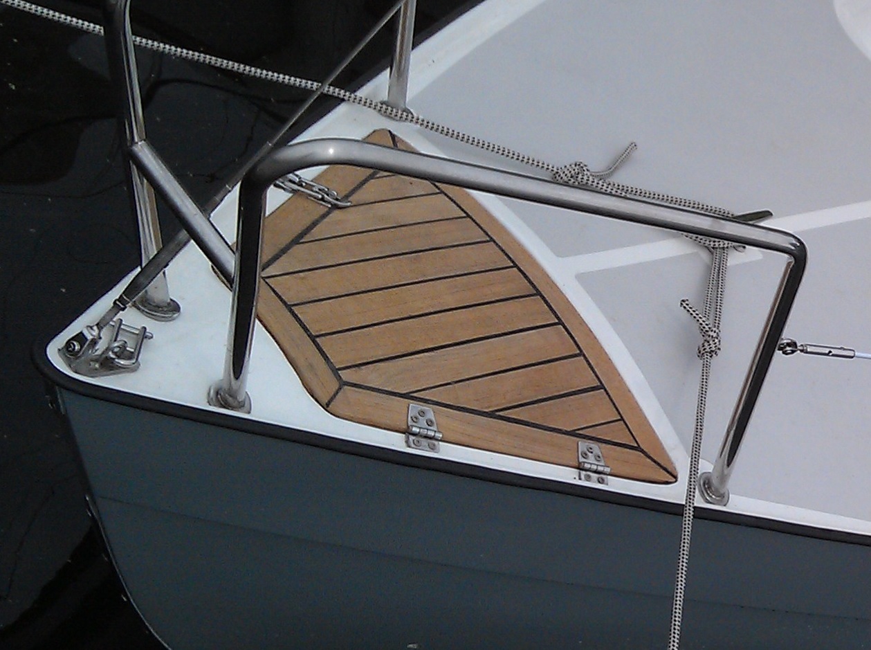 Das Steckshot wurde aus Bootsbausperrholz mit beidseitigem Teakfurnier neu gefertigt. Da die Saison bereits begonnen hatte, habe ich letztes Jahr darauf verzichtet, die Kanten duch Teakleisten zu schützen. Dies werde ich diesen Sommer nacholen.