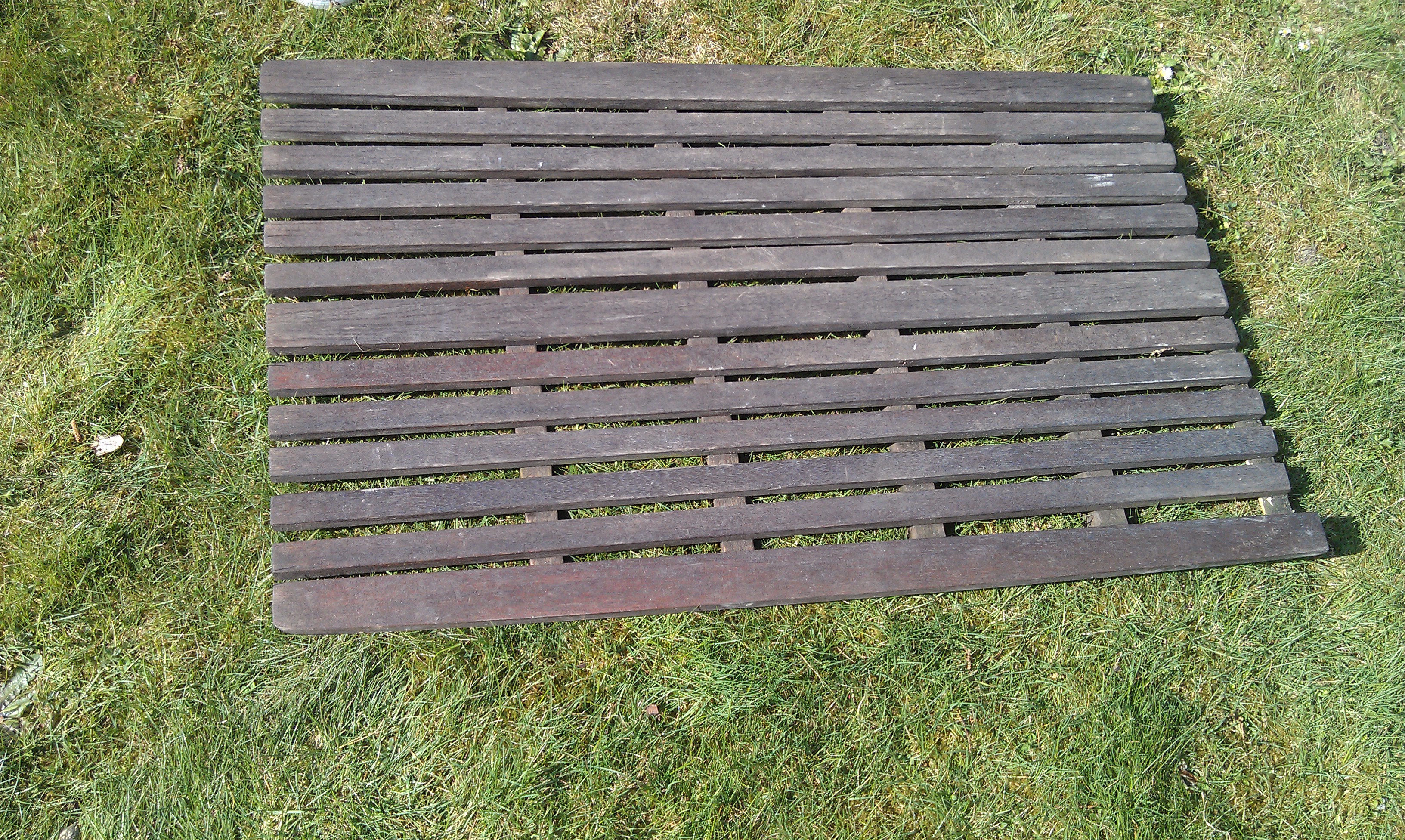 Die Grätings wurden zerlegt, angeschliffen und konnten so weiter genutzt werden. Hier nur der Zustand vor der Sanierung, da die Überarbeitung erst gegen Ende der Saison erfolgte (Segeln war wichtiger).