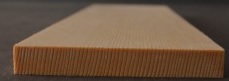 Ein Beispiel für liegende und halbstehende Jahresringe. Dieses Brett würde sich beim Biegen spalten.