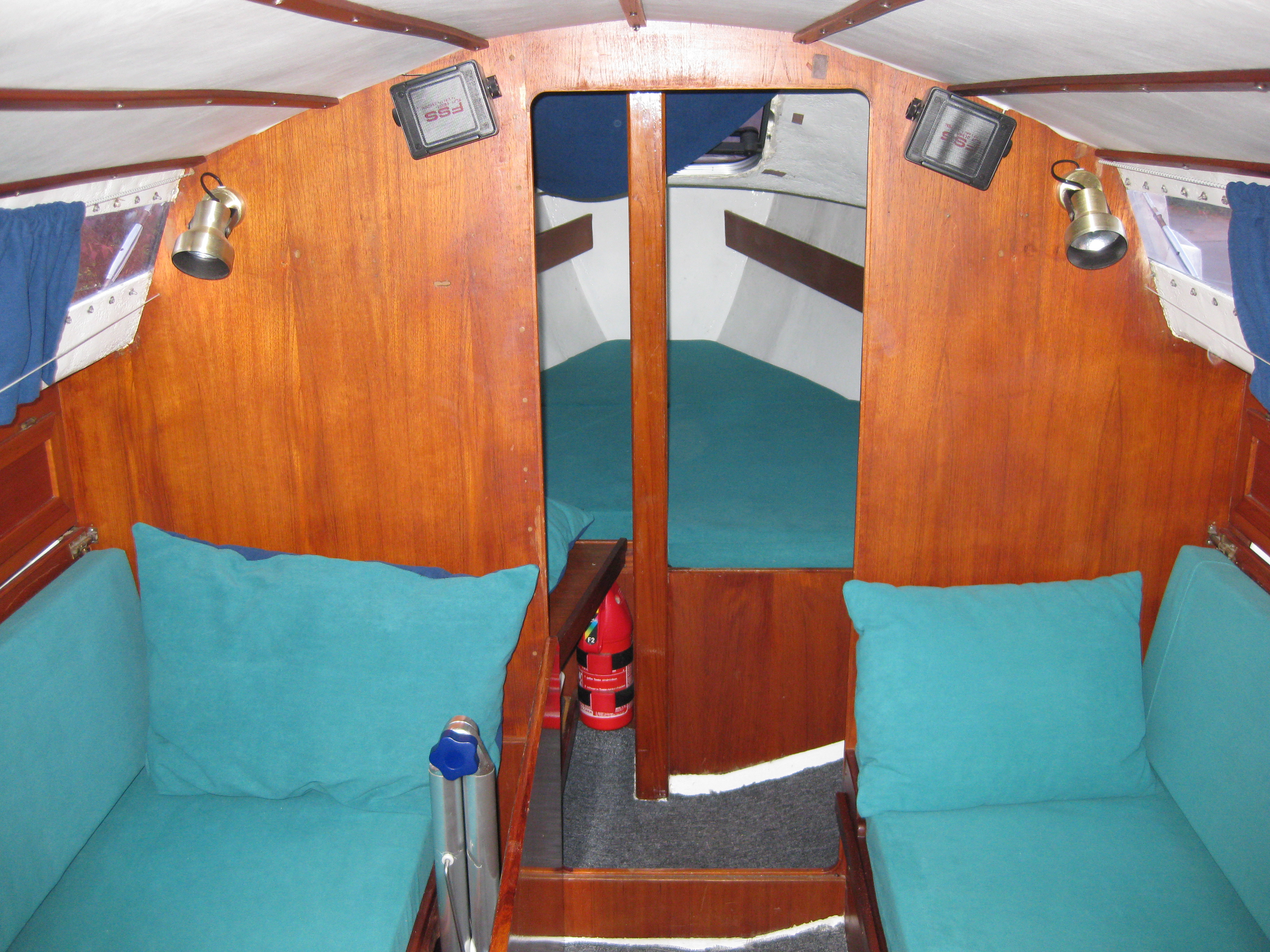 Eine Doppelkoje im Vorschiff sowie zwei Kojen im Salon bieten Platz für vier Personen. Wobei zugegebener Maßen, das Vorschiff für zwei erwachsene Personen schon etwas eng ist. Dies ist aber ideal für eine kleine Familie.