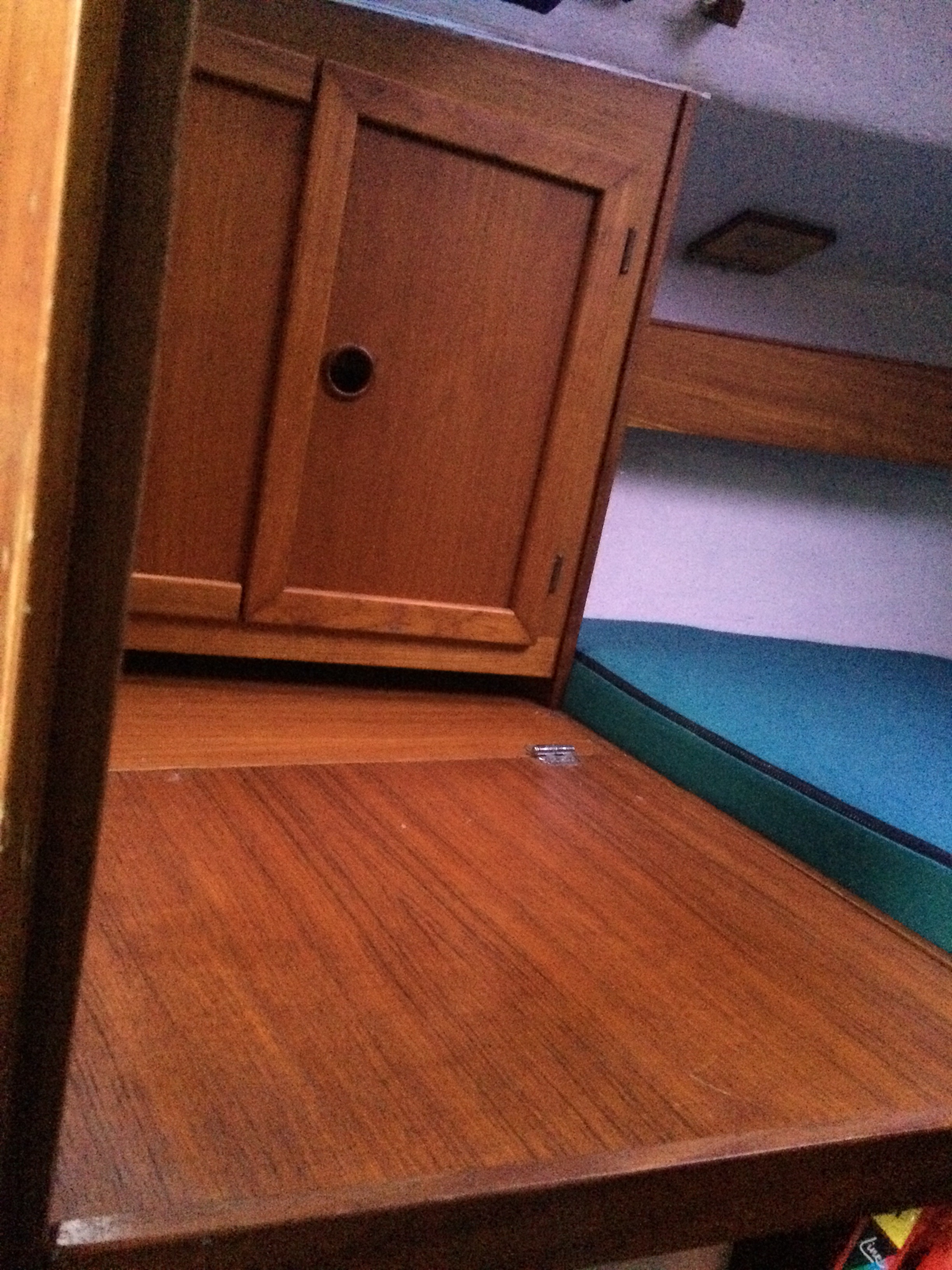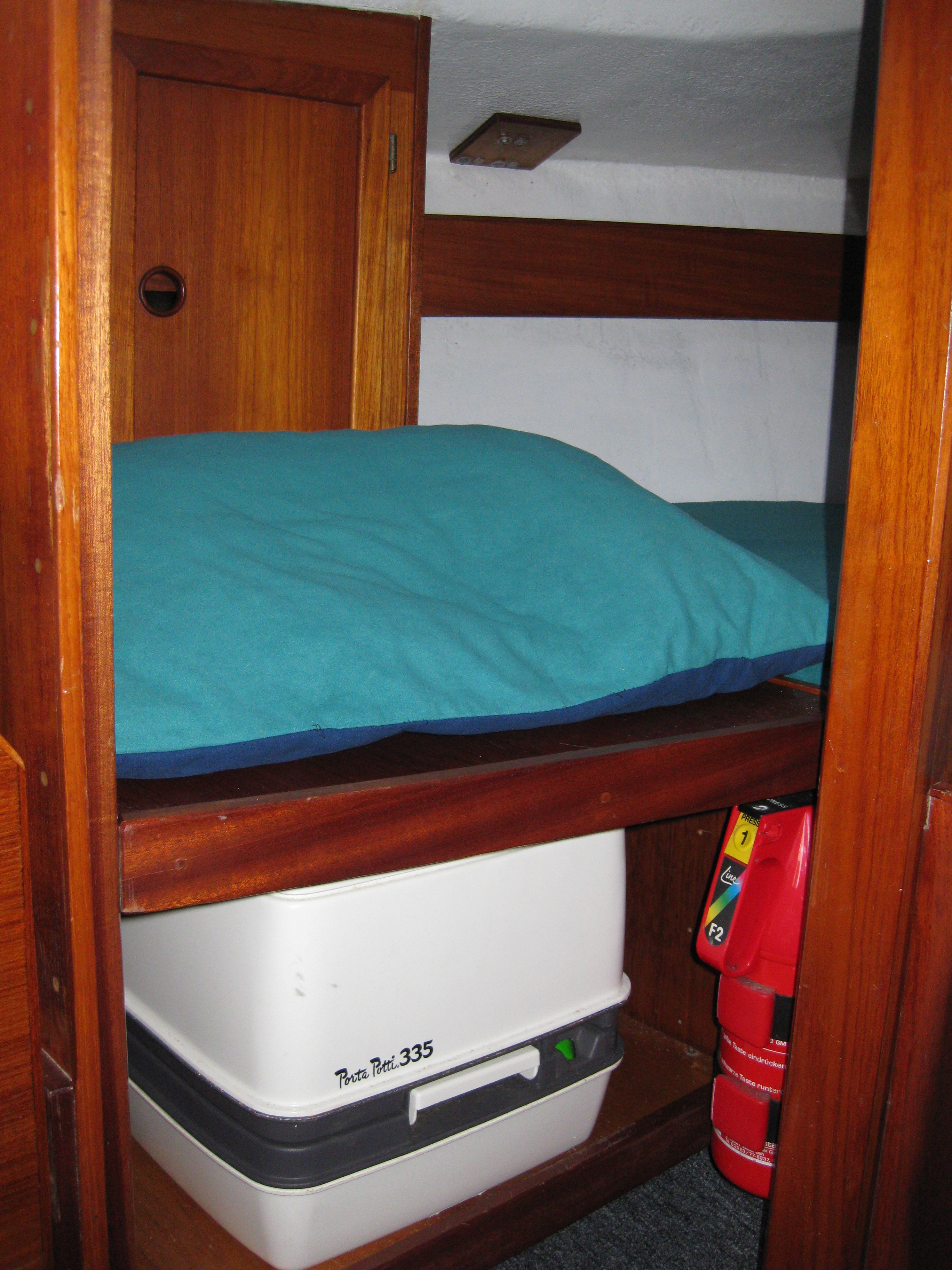 In der zusätzlichen Hundekoje haben wir das Polster entfernt, diese wurde von uns als Stauraum für die Segel, Spinnacker, Schlauchboot und ein Schlauchkajak genutzt.