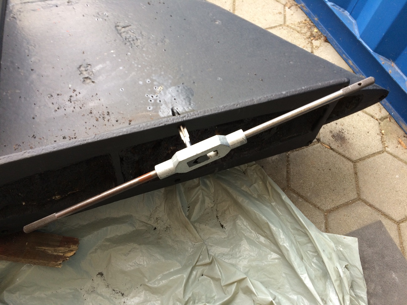 Der Kiel wird sandgestrahlt und versiegelt. Die Gewinde werden nachgeschnitten.