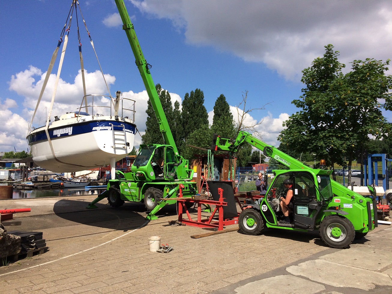 Die Montage erforderte von den Profis zentimetergenaues Arbeiten mit dem schweren Rumpf...