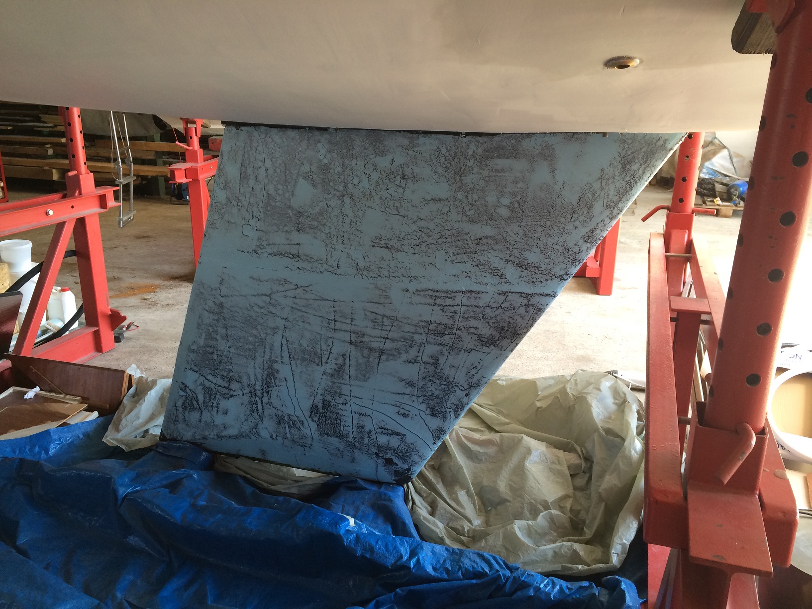 Der Kiel selbst ist stark korrodiert, wurde zur Sanierung abgenommen (allein, um den Rumpf für die Sanierung besser erreichen zu können).