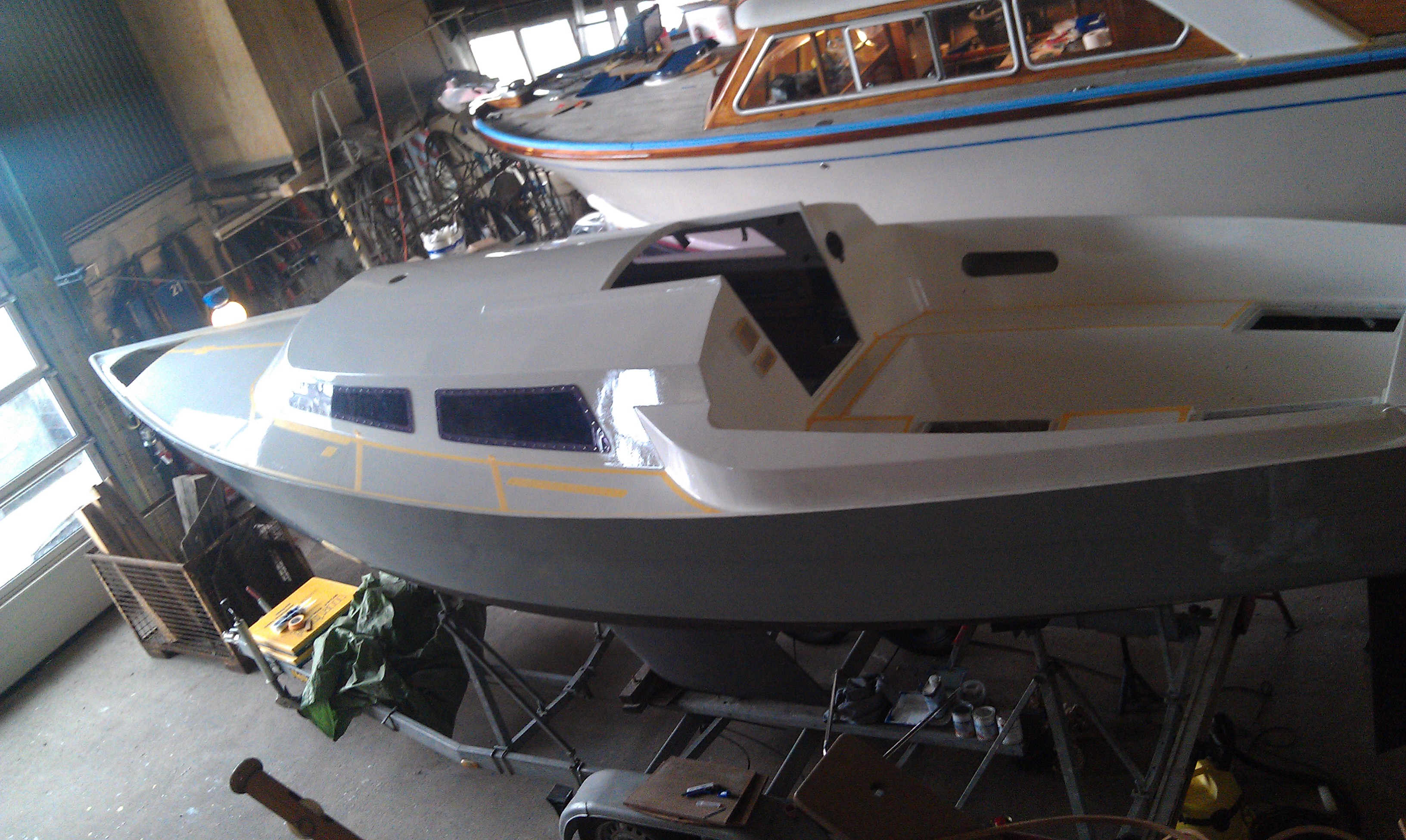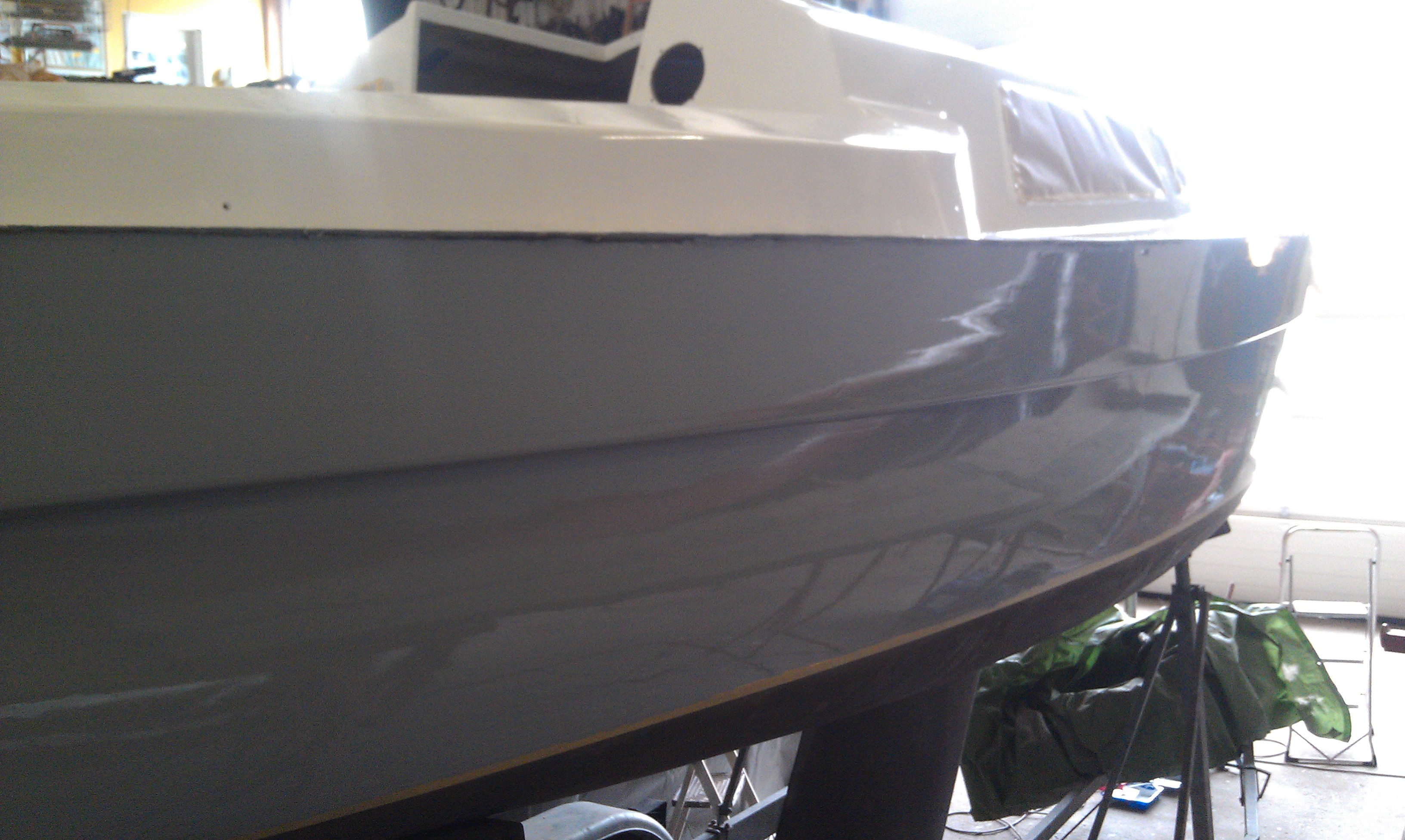 Der Rumpf wurde in zwei Schichten lackiert. Hier musste nicht nachgeschliffen werden und der Epifanes Lack deckt und verläuft hervorragend.